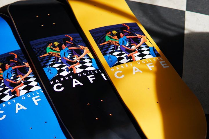 British brand Cafe Skateboards recently released a series with Gaurab Thakali. The London-based artist illustrated a dance scene on a black and white tile background for Harry Ogilvie aka @rancidharry‘s first pro-model. This series entitled “Old Duke” was produced in…